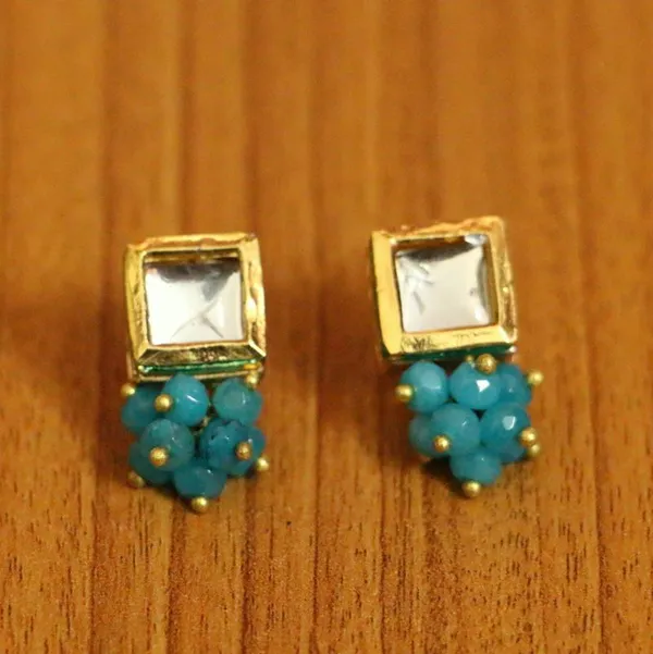 This Beautiful Studs Is Handcrafted In Brass Alloy With Imitation Turquoise & Kundan With Meenakari Work Of Very Fine Quality . This Studs Is Coated With 18kt Gold Polish Which Give Them A Unique Look . An Absolutely Stunning Piece To Own And Are Very Light In Weight.